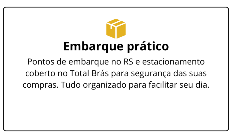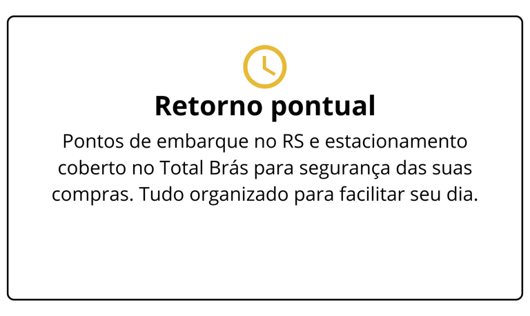 A Mônica Turismo é especializada em viagens de compras do RS para São Paulo, focada em lojistas que abastecem no Brás, 25 de Março e Bom Retiro. Saídas todos os domingos e quartas, ônibus leito total/leito cama e opção de pernoite 2x ao mês com hospedagem no Hotel Total Brás.